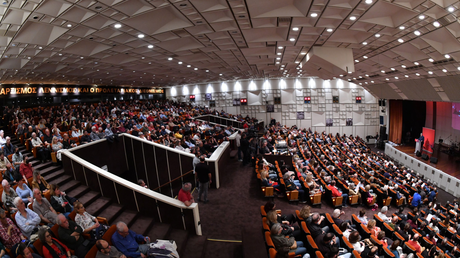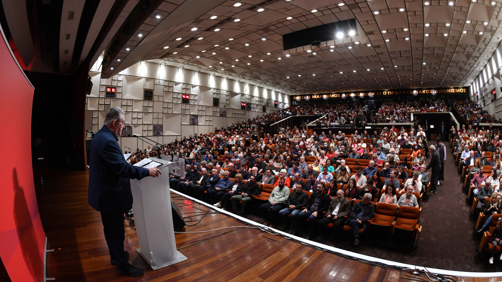 و مع اعتقادٍ راسخ بأن الأرض ستغدو حمراء  في نهاية المطاف، من أقصاها إلى أقصاها، نرحّب بالرفاق من وفود الأحزاب الشيوعية والعمالية من الجزائر، والأرجنتين، والنمسا، وفنزويلا، وفرنسا، وألمانيا، والدنمارك، والولايات المتحدة الأمريكية، وأيرلندا، وإسبانيا، وإيطاليا، وكازاخستان، والمكسيك، وهولندا، وأوكرانيا، وباكستان، وفلسطين، و الباراغواي، وروسيا، والسويد، وتركيا، وفنلندا، الحاضرين معنا الليلة.