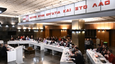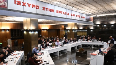 El discurso introductorio fue pronunciado por Dimitris Koutsoumpas, Secretario General del Comité Central del KKE.